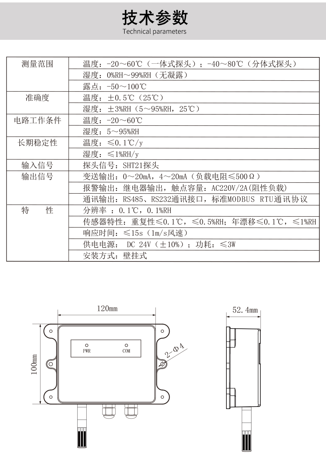 NHR-WS20系列一體化溫濕度變送器電路采用進(jìn)口微處理器芯片、進(jìn)口高精度溫濕度傳感器,確保溫濕度變送器優(yōu)異的可靠性。它具有精度高、穩(wěn)定性強(qiáng)、響應(yīng)速度快等特點(diǎn),可同時(shí)對(duì)被測環(huán)境的溫度、濕度進(jìn)行測量和控制。適用于通訊機(jī)房、辦公室、醫(yī)院、檔案館、博物館、賓館、樓宇自控等場所的溫濕度測量。