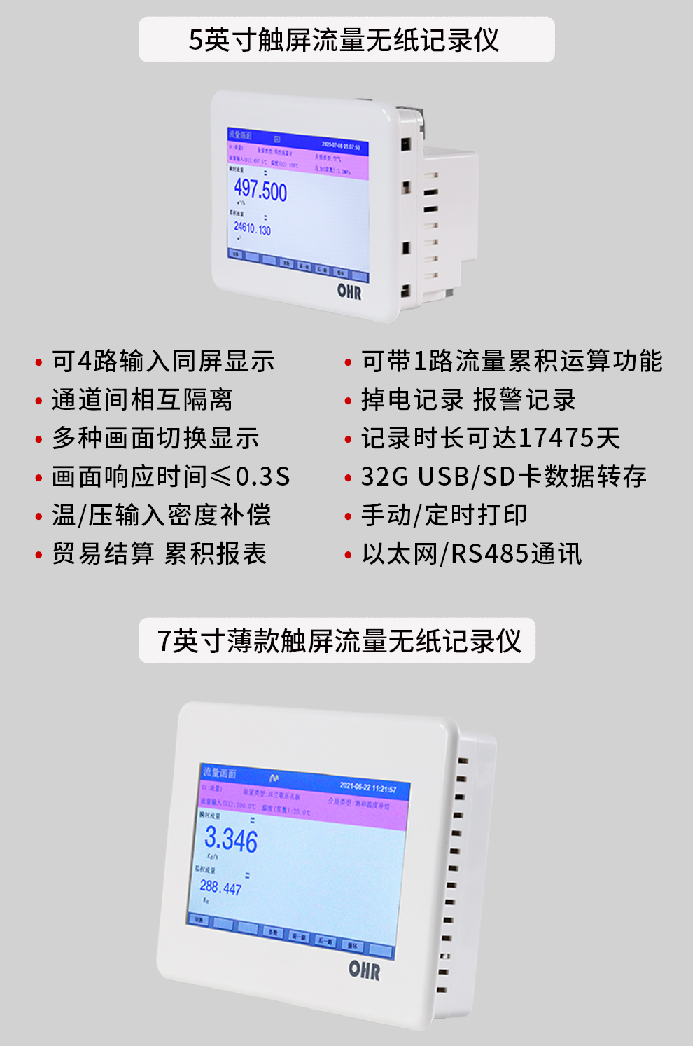 OHR-T系列觸摸超薄流量無(wú)紙記錄儀