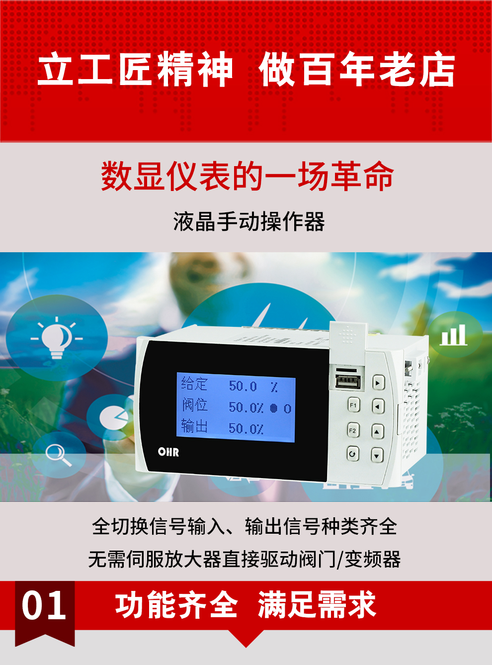 OHR-G500/G500R系列液晶手動操作器/記錄儀適合作為DCS系統(tǒng)回路調(diào)節(jié)控制輸出和智能調(diào)節(jié)器控制輸出的備用操作器使用,能接受與系統(tǒng)同步的給定信號和反饋信號,根據(jù)給定信號輸出相應(yīng)的控制量.