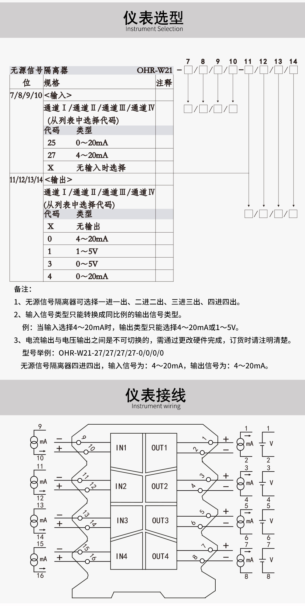 OHR-W21系列無源信號(hào)隔離器無需外供電源,由輸入回路供電,實(shí)現(xiàn)信號(hào)隔離。可以與各種工業(yè)傳感器、現(xiàn)場(chǎng)儀表配合,取回參數(shù)信號(hào),隔離變送傳輸,滿足用戶本地監(jiān)視遠(yuǎn)程數(shù)據(jù)的需求。本產(chǎn)品品種分為一進(jìn)一出、兩進(jìn)兩出、三進(jìn)三出、四進(jìn)四出,且輸入、輸出磁隔離。