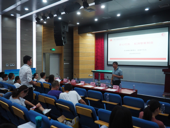 決賽之前,林善平先生給學(xué)生們作了題為“匠心打造,虹潤智能制造”的講座,林先生圍繞虹潤集團(tuán)傳承的“工匠精神”和“傳統(tǒng)文化”,向?qū)W生們講述了虹潤如何通過不斷尋求發(fā)展道路、不斷發(fā)現(xiàn)問題解決問題,從“中國最好”走向“世界最好”的過程。講座后同學(xué)們就科技創(chuàng)新、大學(xué)生創(chuàng)業(yè)等感興趣的方面向林先生提問,林先生一一做了耐心解答,現(xiàn)場(chǎng)氣氛活躍。
