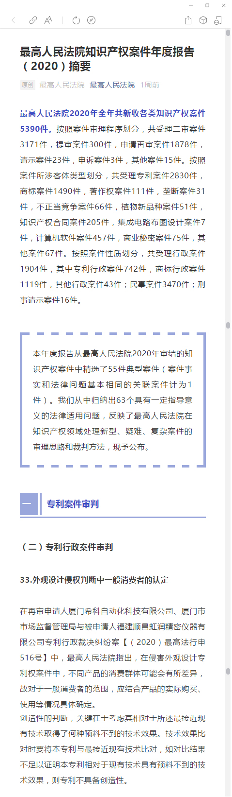 《最高人民法院知識產(chǎn)權(quán)案件年度報告(2020)摘要》 之典型案件 |