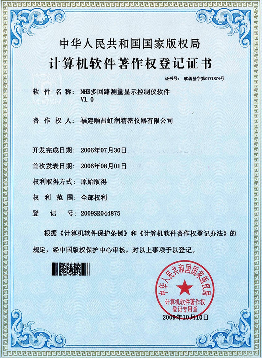 虹潤(rùn)多路巡檢儀是虹潤(rùn)公司應(yīng)用自主知識(shí)產(chǎn)權(quán)開(kāi)發(fā)的多通道控制檢測(cè)儀表,產(chǎn)品榮獲巡回檢測(cè)顯示方法及裝置(專利號(hào)2007101540079)國(guó)家發(fā)明專利,NHR多回路測(cè)量顯示控制儀軟件(版權(quán)登記號(hào)2009SR044875)、多回路測(cè)量顯示控制儀軟件V1.00(版權(quán)登記號(hào)2015SR178100)、巡回檢測(cè)控制儀軟件V1.00(版權(quán)登記號(hào)2015R11S252117)3項(xiàng)軟件著作權(quán),參與起草《工業(yè)自動(dòng)化產(chǎn)品安全要求第7 部分:回路調(diào)節(jié)器的安全要求 GB 30439.7-2014》《工業(yè)過(guò)程測(cè)量和控制系統(tǒng)用儀表可靠性技術(shù)報(bào)告編寫導(dǎo)則GB/T 29821-2013》2項(xiàng)國(guó)家標(biāo)準(zhǔn)。產(chǎn)品可針對(duì)現(xiàn)場(chǎng)溫度、壓力、液位、速度等各種信號(hào)進(jìn)行采集、顯示、控制,并實(shí)現(xiàn)信號(hào)遠(yuǎn)傳、通訊、打印等功能,適用于需要進(jìn)行多點(diǎn)測(cè)量的巡回檢測(cè)系統(tǒng)。