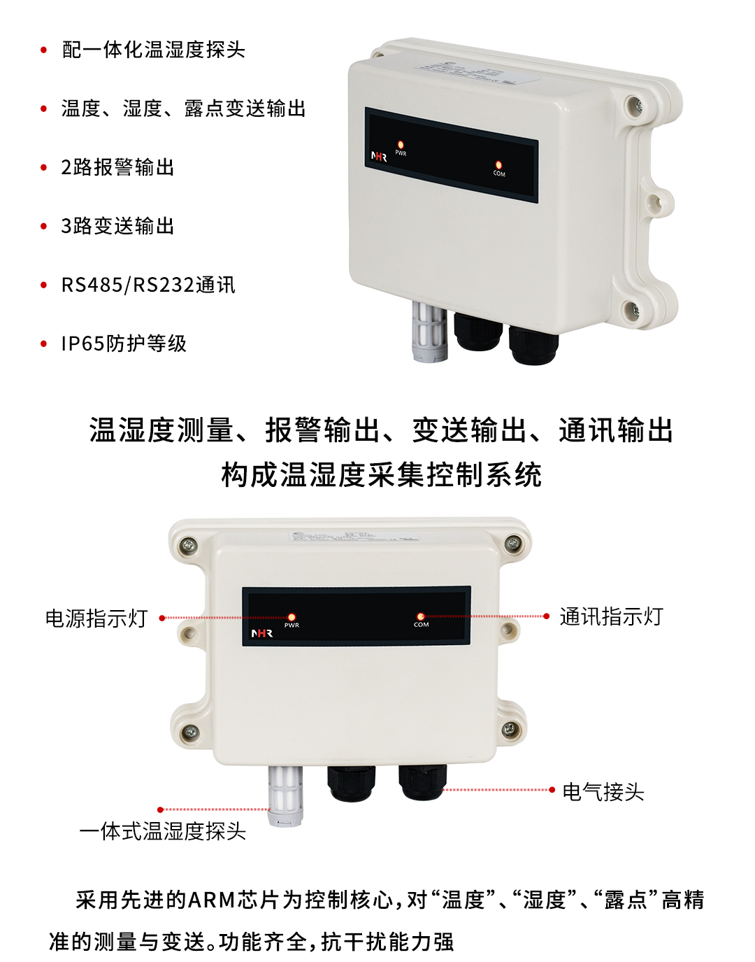 NHR-WS20系列一體化溫濕度變送器電路采用進(jìn)口微處理器芯片、進(jìn)口高精度溫濕度傳感器,確保溫濕度變送器優(yōu)異的可靠性。它具有精度高、穩(wěn)定性強(qiáng)、響應(yīng)速度快等特點(diǎn),可同時(shí)對(duì)被測環(huán)境的溫度、濕度進(jìn)行測量和控制。適用于通訊機(jī)房、辦公室、醫(yī)院、檔案館、博物館、賓館、樓宇自控等場所的溫濕度測量。
