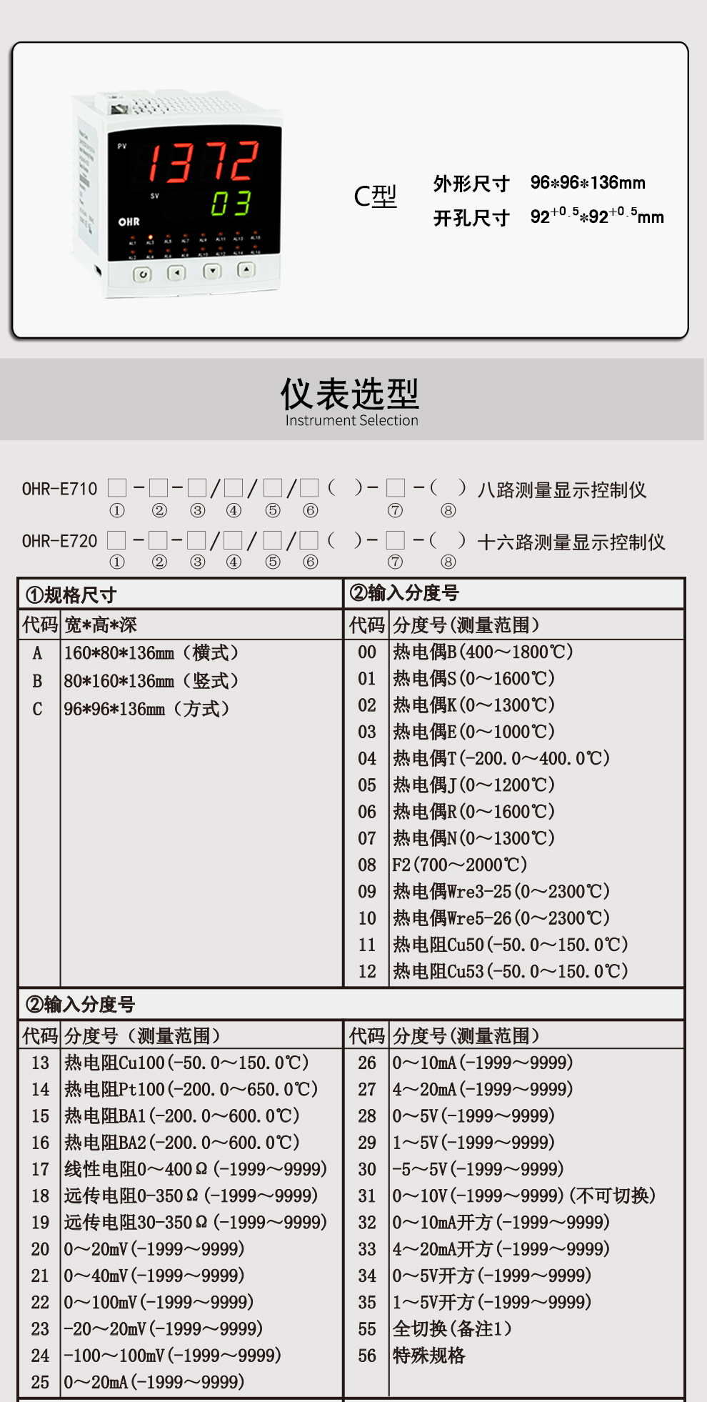 OHR-E700系列多回路測量顯示控制儀針對現(xiàn)場溫度、壓力、液位、速度等各種信號進行采集、顯示、控制、遠傳、通訊、 打印等處理,構成數(shù)字采集系統(tǒng)及控制系統(tǒng),適用于需要進行多測量點巡回檢測的系統(tǒng)。
