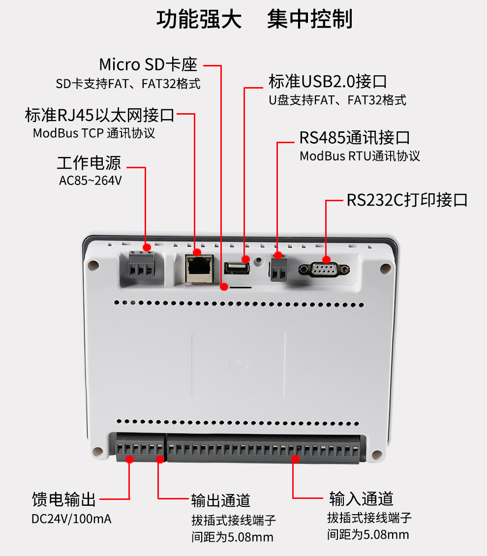 OHR-T系列觸摸超薄無紙記錄儀采用新型大規(guī)模集成電路,對(duì)輸入、輸出、電源、信號(hào)采取可靠保護(hù)和強(qiáng)抗干擾設(shè)計(jì)。8路萬能信號(hào)輸入(可組態(tài)選擇輸入:標(biāo)準(zhǔn)電壓、標(biāo)準(zhǔn)電流、熱電偶、熱電阻、頻率、毫伏等)??蓭?路報(bào)警輸出,1個(gè)饋電輸出,RS485通訊接口,以太網(wǎng)接口,微型打印機(jī)接口和USB接口,SD卡插座。