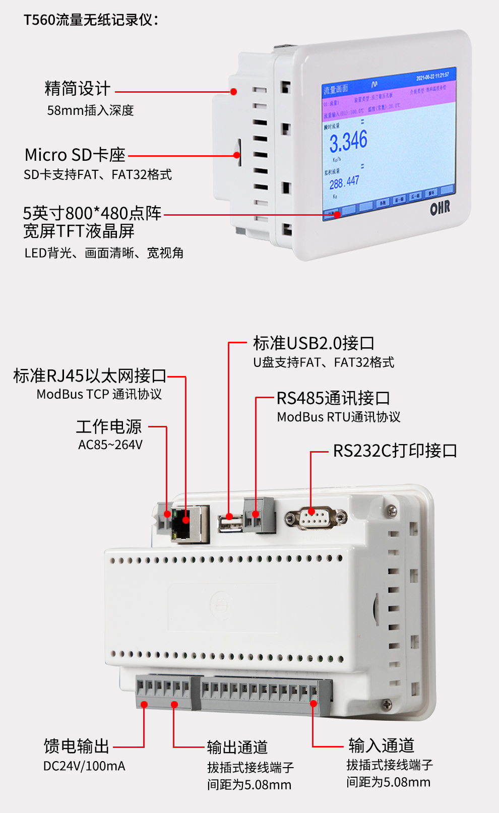 OHR-T系列觸摸超薄流量無(wú)紙記錄儀