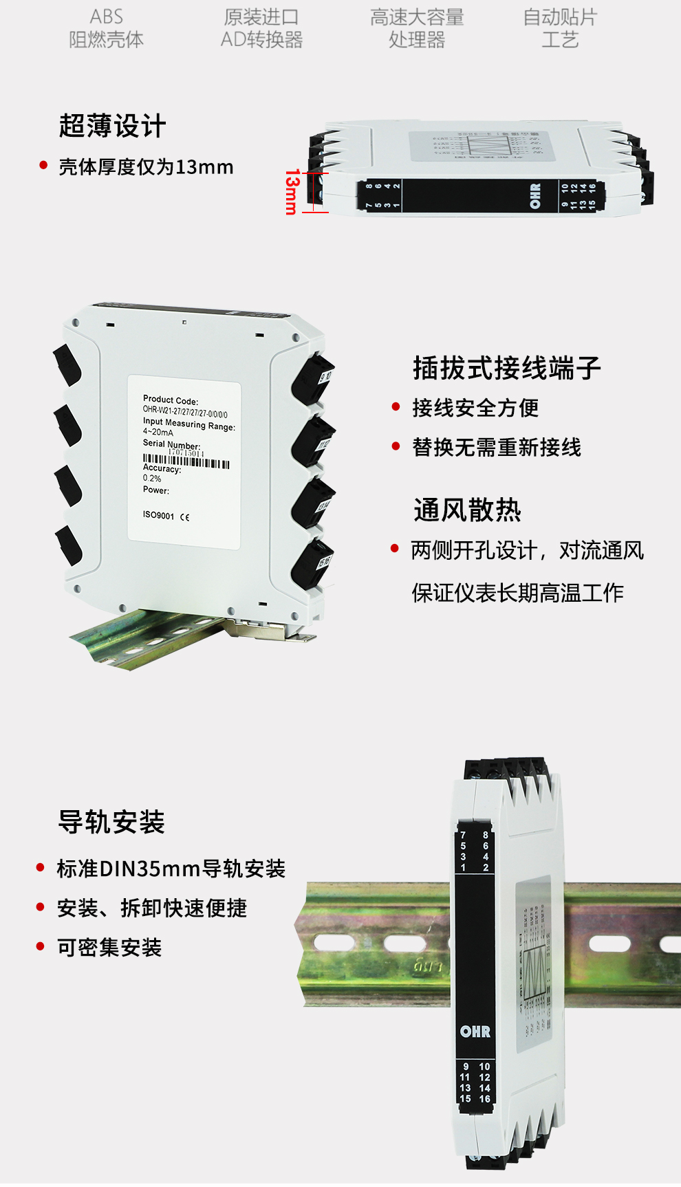 OHR-W21系列無源信號(hào)隔離器無需外供電源,由輸入回路供電,實(shí)現(xiàn)信號(hào)隔離。可以與各種工業(yè)傳感器、現(xiàn)場(chǎng)儀表配合,取回參數(shù)信號(hào),隔離變送傳輸,滿足用戶本地監(jiān)視遠(yuǎn)程數(shù)據(jù)的需求。本產(chǎn)品品種分為一進(jìn)一出、兩進(jìn)兩出、三進(jìn)三出、四進(jìn)四出,且輸入、輸出磁隔離。