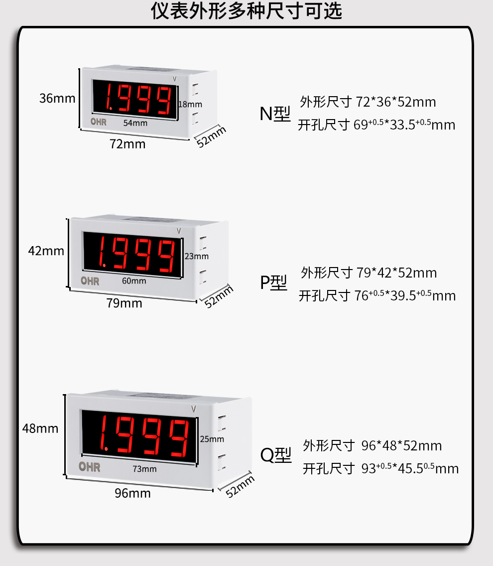 OHR-D300系列電壓/電流表是一種小體積的經(jīng)濟型數(shù)字式電測儀表,主要用于對電氣線路中的交直流電壓或交直流電流進行實時測量,并用LED數(shù)碼管以數(shù)字直讀方式進行顯示。產(chǎn)品具有穩(wěn)定性好,抗干擾性強,性價比高等優(yōu)點,且產(chǎn)品體積小,可直接替代原有指針式儀表。廣泛應(yīng)用于穩(wěn)壓器、點焊機、校驗臺等電氣設(shè)備或系統(tǒng)中。