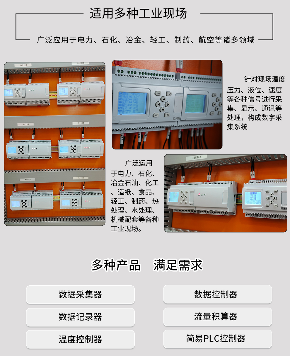 NHR-PR30系列數(shù)據(jù)采集器采用高速、高性能32位ARM微處理器,多重保護(hù)和隔離設(shè)計(jì),抗干擾能力強(qiáng), 可靠性高。顯示功能強(qiáng)大,具有實(shí)時(shí)曲線畫面、數(shù)顯畫面。儀表采用主副機(jī)結(jié)構(gòu)設(shè)計(jì),主機(jī)可提供4路萬能信號輸入,通道間相互隔離,RS485 通訊、以太網(wǎng)通訊等功能,連接副機(jī)可將I/O容量擴(kuò)展至8路輸入。