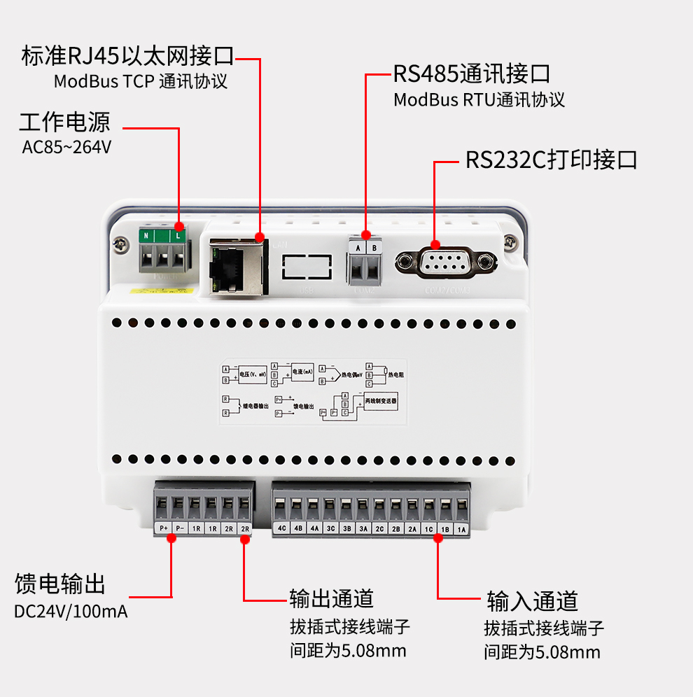 OHR系列觸摸屏數(shù)顯表采用新型大規(guī)模集成電路,對(duì)輸入、輸出、電源、信號(hào)采取可靠保護(hù)和強(qiáng)抗干擾設(shè)計(jì)。4路萬(wàn)能信號(hào)輸入(可組態(tài)選擇輸入:標(biāo)準(zhǔn)電壓、標(biāo)準(zhǔn)電流、熱電偶、熱電阻、毫伏等)??蓭?路報(bào)警輸出,1個(gè)饋電輸出,RS485通訊接口,以太網(wǎng)接口,微型打印機(jī)接口;具有強(qiáng)大的顯示功能,實(shí)時(shí)測(cè)量顯示,棒圖顯示,報(bào)警狀態(tài)顯示,組態(tài)畫(huà)面顯示等。