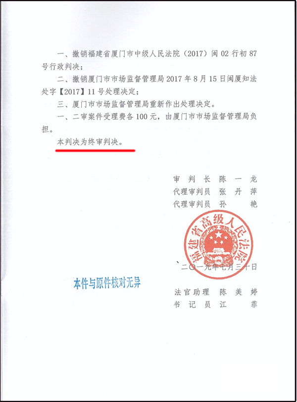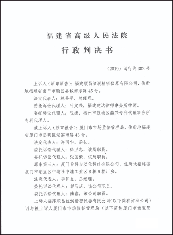 附件:福建省高級(jí)人民法院【2019】閩行終302號(hào)行政判決書(shū)